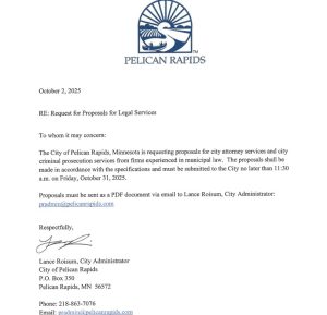 CITY ATTORNEY SERVICES. The City of Pelican Rapids is requesting proposals for city attorney…